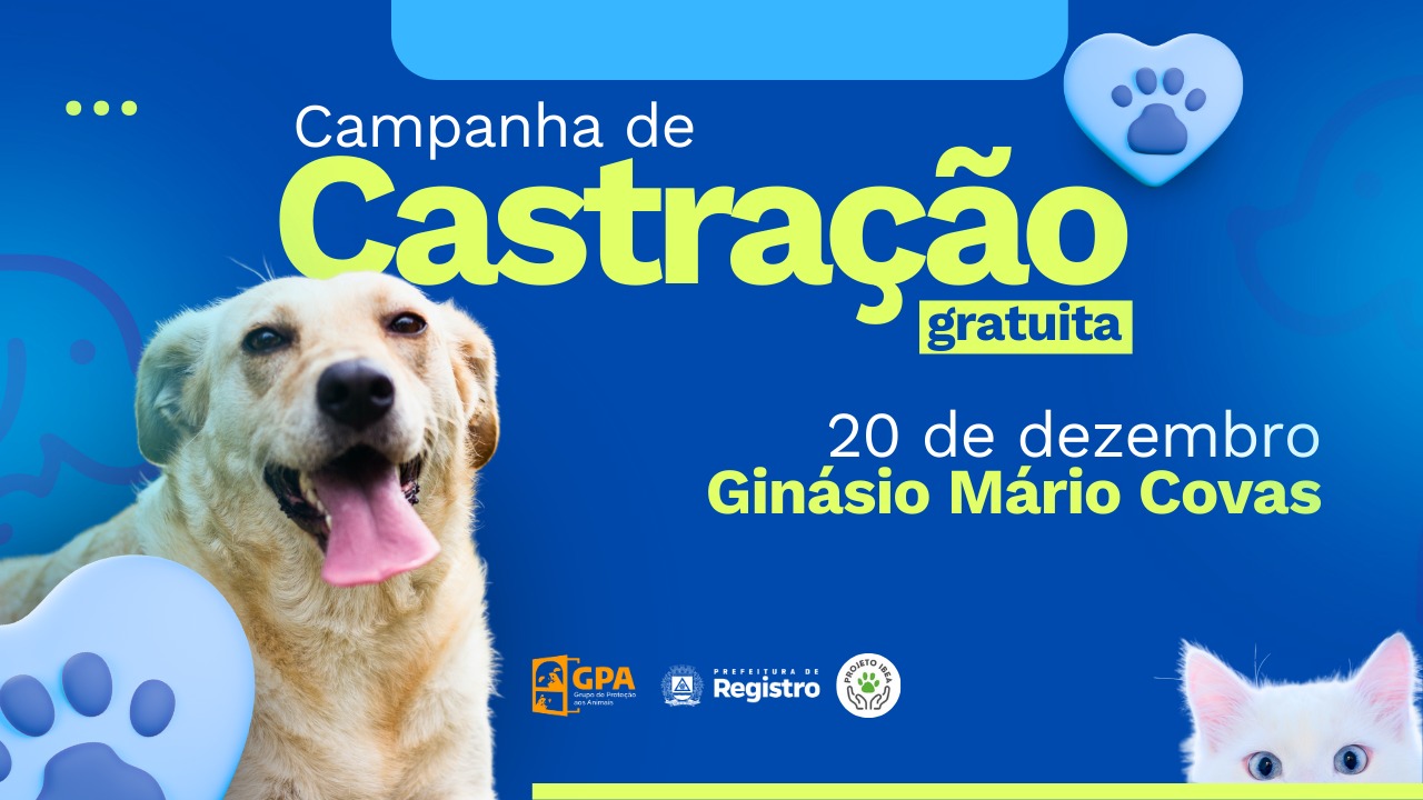 Registro sediará, no dia 20 de dezembro, uma mobilização de grande alcance voltada à castração gratuita de cães e gatos, no Ginásio Mário Covas. A campanha será realizada pelo Projeto Ibea, com recursos provenientes de emenda parlamentar, e conta com apoio do Grupo de Proteção ao Animais – GPA Vale do Ribeira e da Prefeitura de Registro, com suporte operacional e logístico de todo o processo.